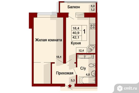 1-комнатная квартира | 10/25 эт. | 42.10 м2 | #238602