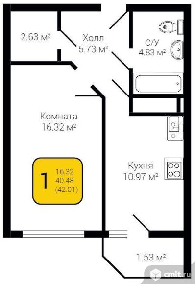 1-комнатная квартира | 14/25 эт. | 42.01 м2 | #280416