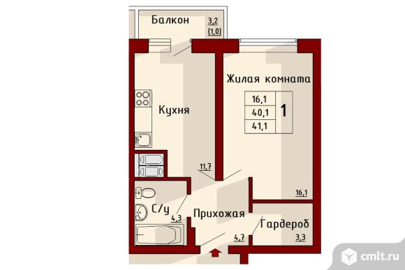 1-комнатная квартира | 18/19 эт. | 41.10 м2 | #318496