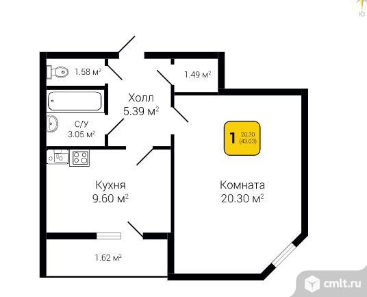 1-комнатная квартира | 13/17 эт. | 43.03 м2 | #340819