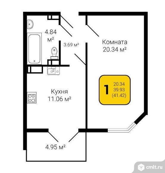 1-комнатная квартира | 14/17 эт. | 41.20 м2 | #351289