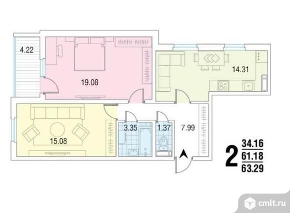 2-комнатная квартира | 3/17 эт. | 63.30 м2 | #352125