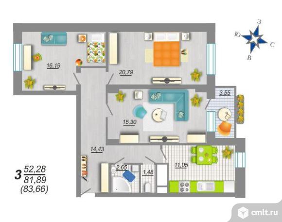 3-комнатная квартира | 17/25 эт. | 83.50 м2 | #382513