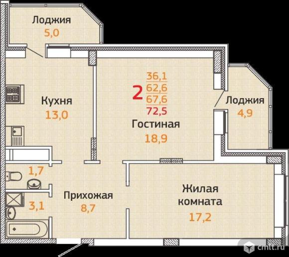 2-комнатная квартира | 17/17 эт. | 72.50 м2 | #385813
