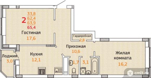 2-комнатная квартира | 8/17 эт. | 56.40 м2 | #385814