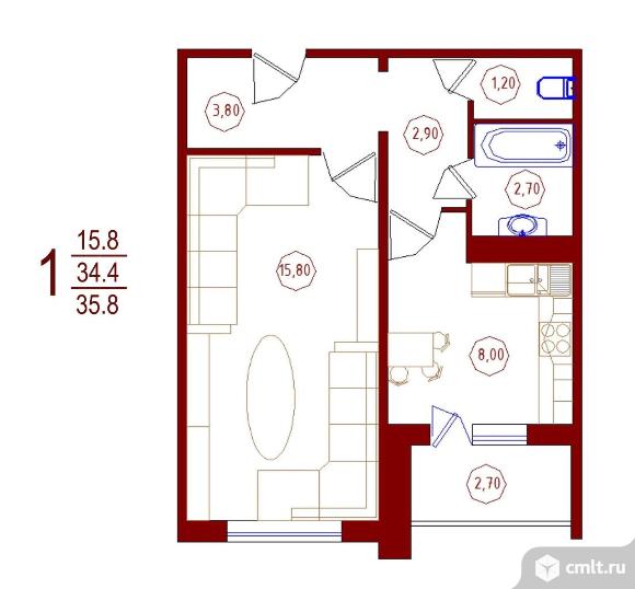 1-комнатная квартира | 7/10 эт. | 35.80 м2 | #387643