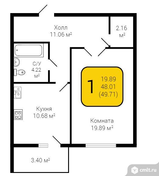 1-комнатная квартира | 6/16 эт. | 49.00 м2 | #388218