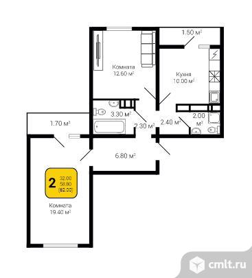 2-комнатная квартира | 9/10 эт. | 62.00 м2 | #388538