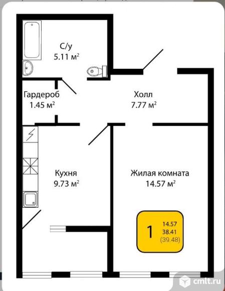 1-комнатная квартира | 8/14 эт. | 39.00 м2 | #388591