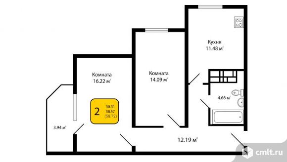 2-комнатная квартира | 2/17 эт. | 59.72 м2 | #388862