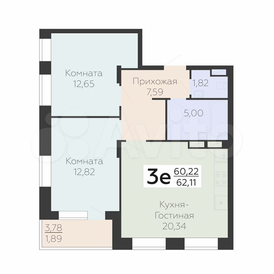 3-комнатная квартира | 1/21 эт. | 62.10 м2 | #397309