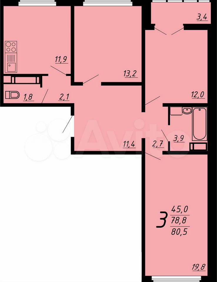 3-комнатная квартира | 2/21 эт. | 80.50 м2 | #397414