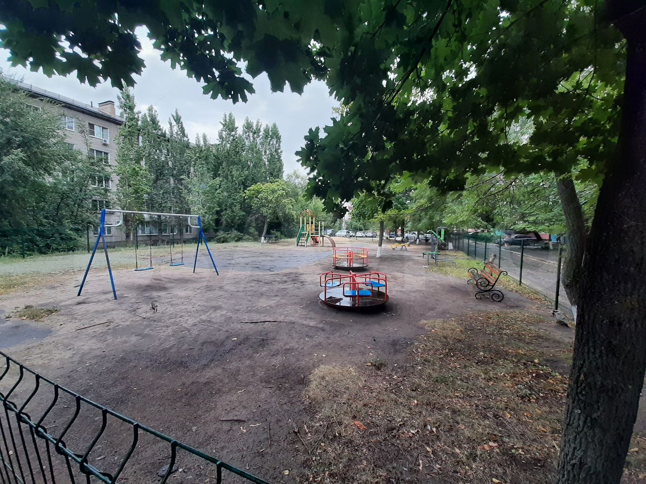 Во дворе закрытая детская площадка ,имеются спортивные снаряды.