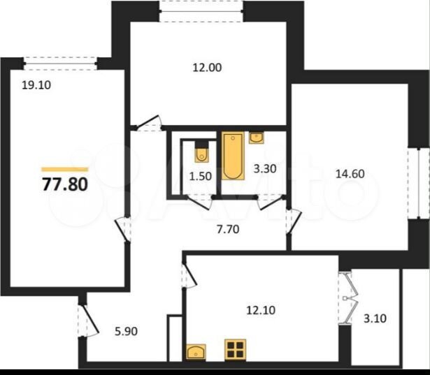 3-комнатная квартира | 1/17 эт. | 77.80 м2 | #399053