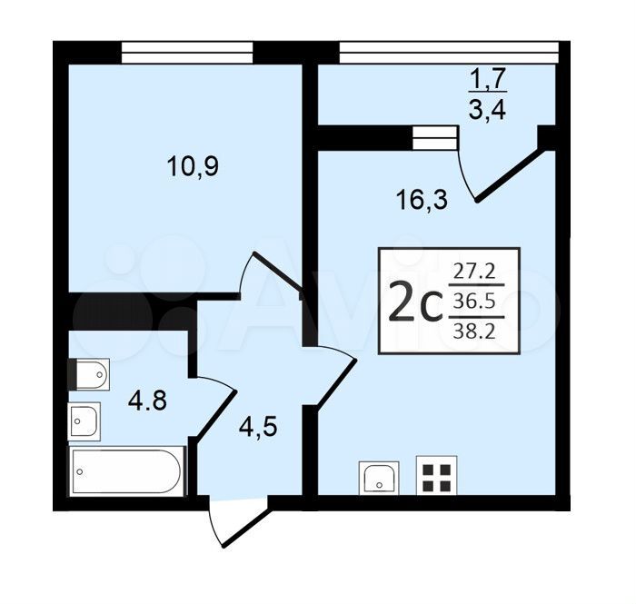 2-комнатная квартира | 1/17 эт. | 37.90 м2 | #399944
