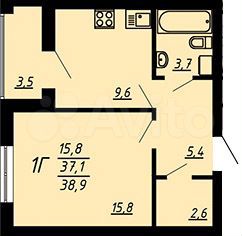 1-комнатная квартира | 1/22 эт. | 38.90 м2 | #400316