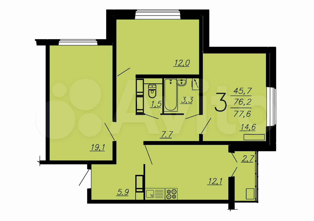 3-комнатная квартира | 4/17 эт. | 77.80 м2 | #400442