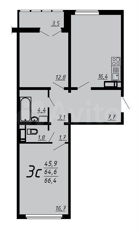 3-комнатная квартира | 9/20 эт. | 66.40 м2 | #400559