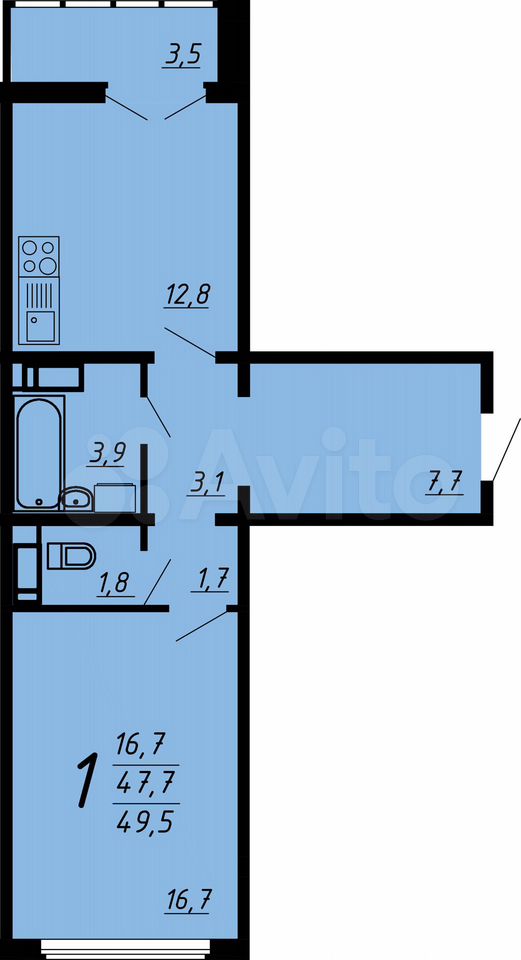 1-комнатная квартира | 9/17 эт. | 49.50 м2 | #400877