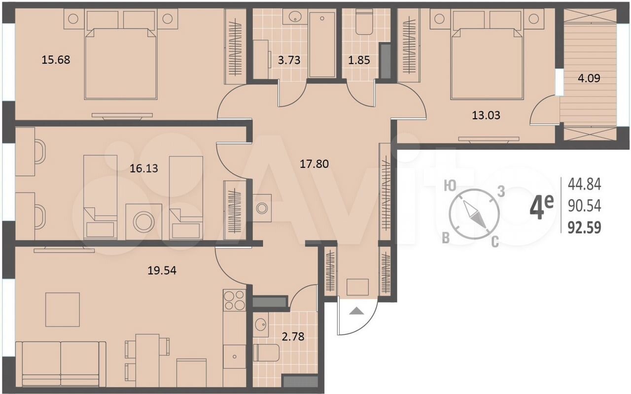 3-комнатная квартира | 8/18 эт. | 92.60 м2 | #400922